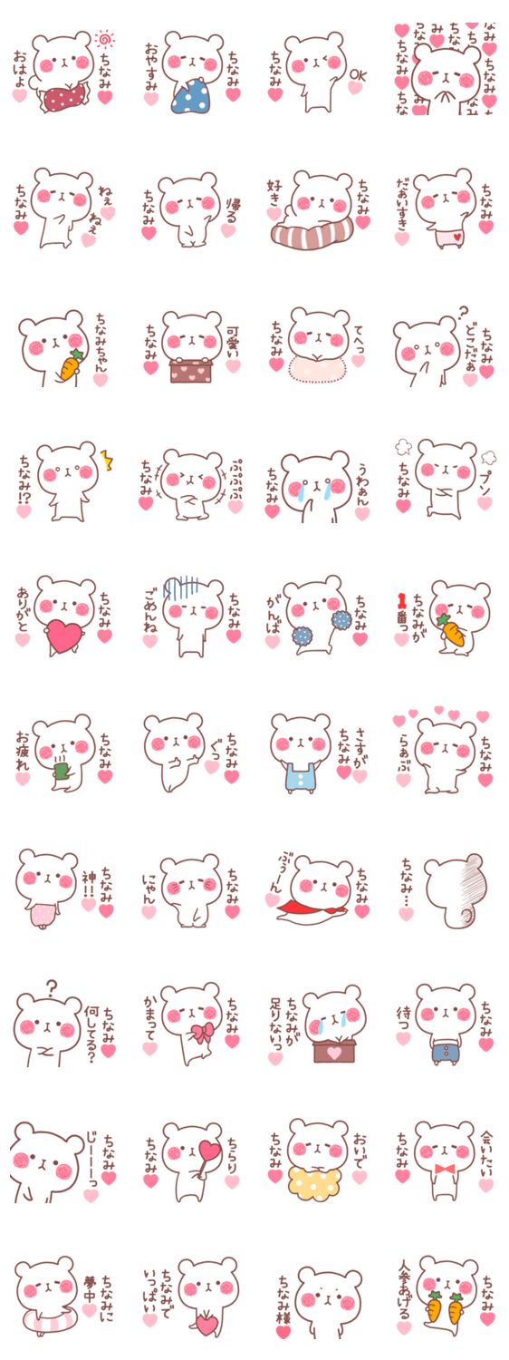 ちーちゃん、ちいちゃん、ちぃちゃん、ちっちゃん、ちなちゃん、ちなみんなど、あなたの大切なちなみちゃんへ送ってください。カップルお友達向け名前スタンプ。