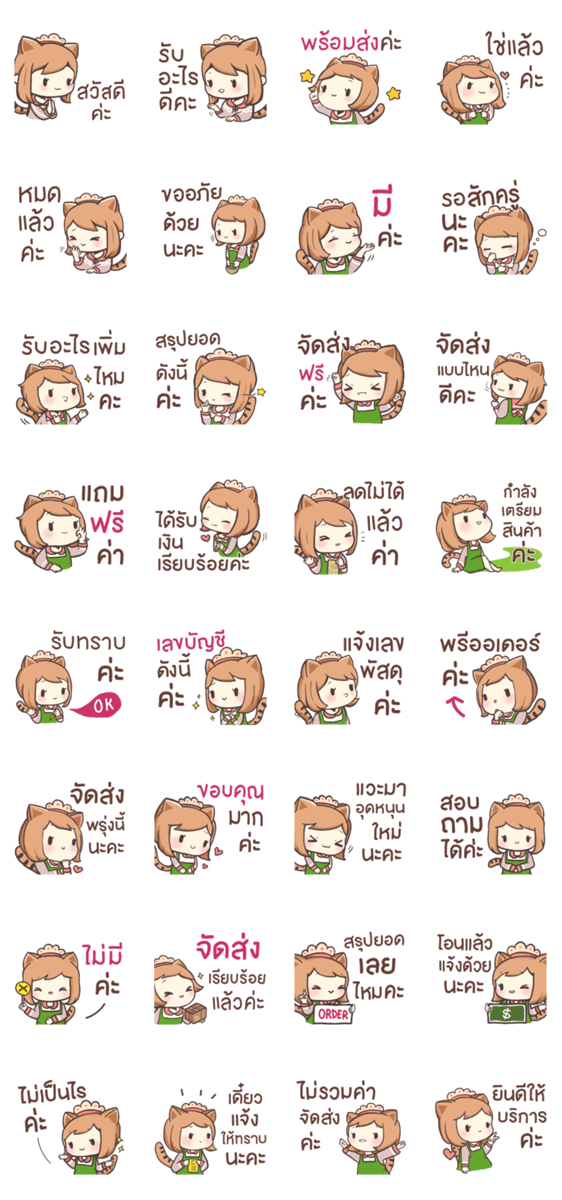 Complete Meow Seller sticker set provides you Thai short sentences to enhance your online selling. They are cute, polite, and easy to use, meow!