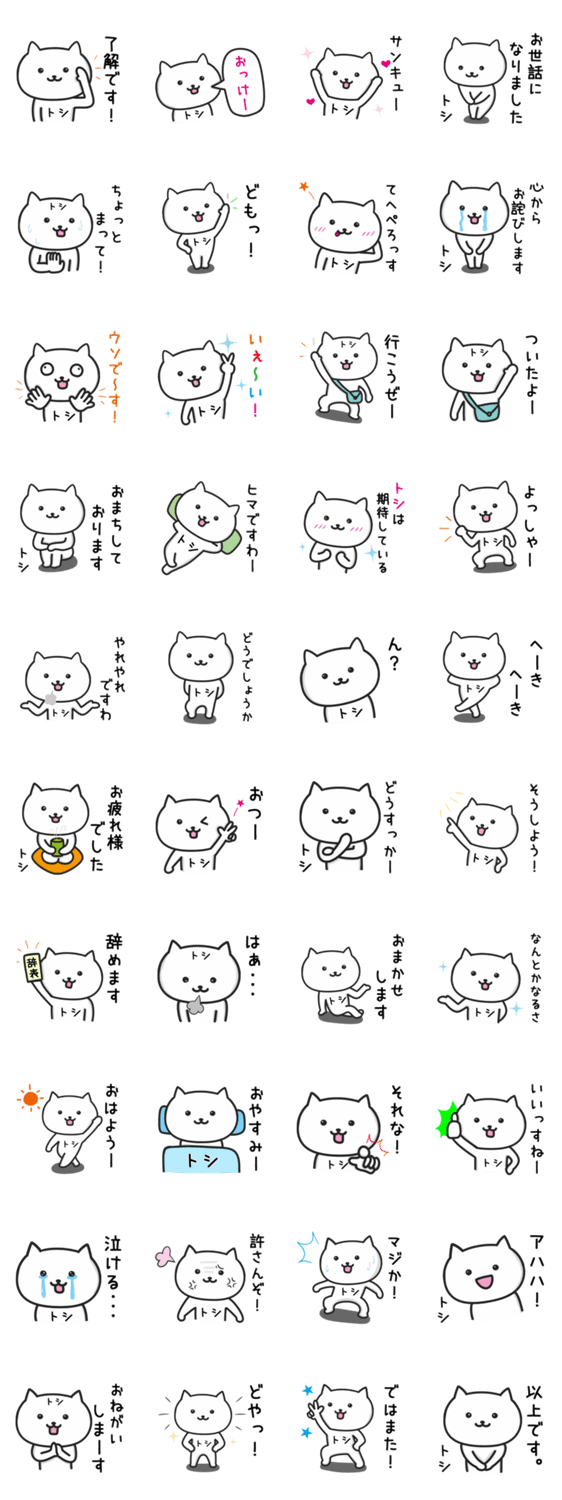 トシが使う、猫の名前・あだ名スタンプです。としお,としゆき,としはる,としみつ,としき, としあき,としひこ,としひろ,としろう,としや,としこ,としかず,としえ,としふみ