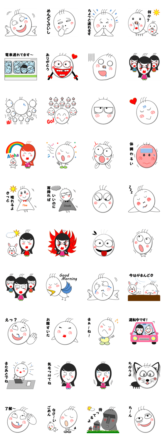 | スタンプ説明 | 刺激的で不思議なキャラクター達の楽しい日常生活第1弾! |