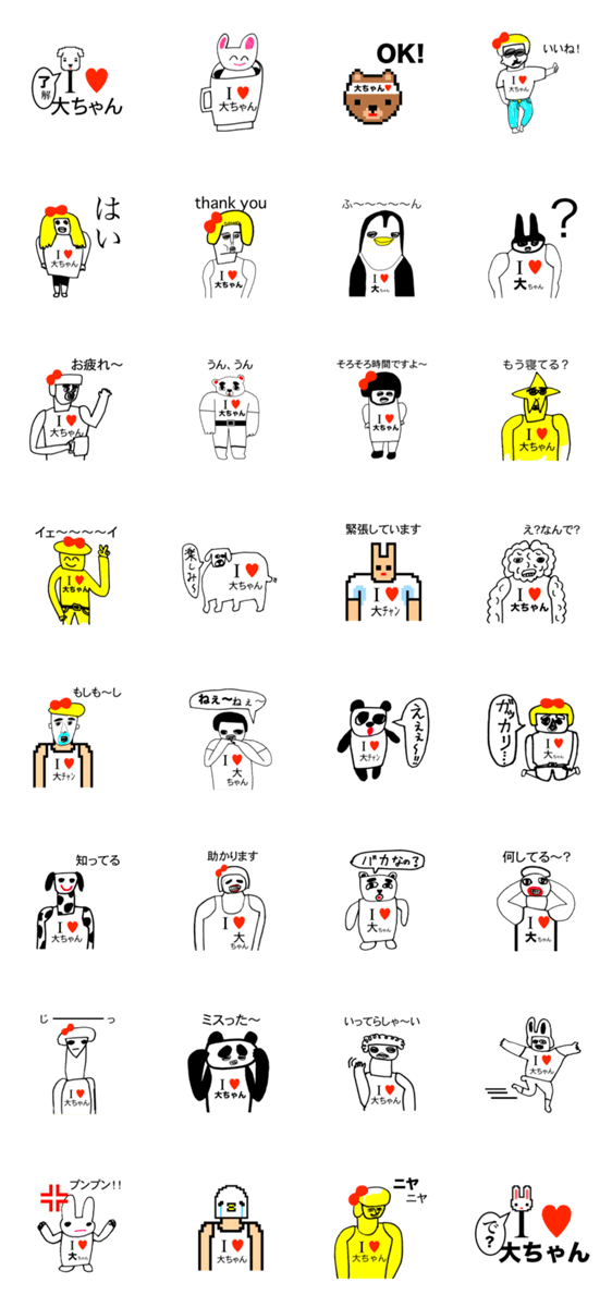 大ちゃん(大畑・大原・大島・大山・大谷・大村・大下・大川・大田・大野・大木・大崎・大輔・大介・大輝・大毅・大地・大也・大吉・大悟・)に送れるスタンプです。