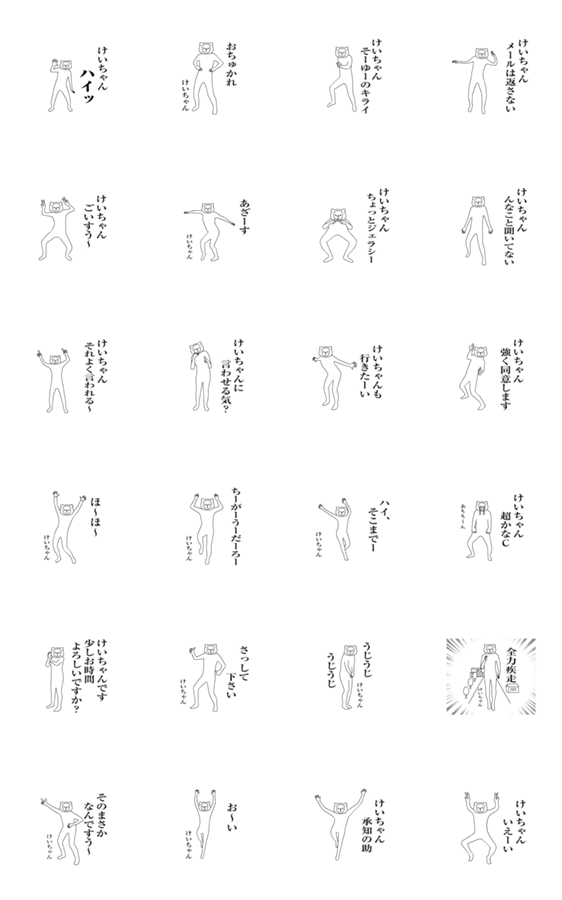 ケイちゃんが使う動く面白い名前スタンプ。日常会話から生意気に聞こえる言葉などを集めてみました。