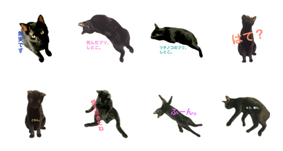 黒猫だけど、名前は「はまち」。なんだかちょっとおっさんくさい、オス猫・はまちのやる気ないスタンプ。決して上司には送らないでください。