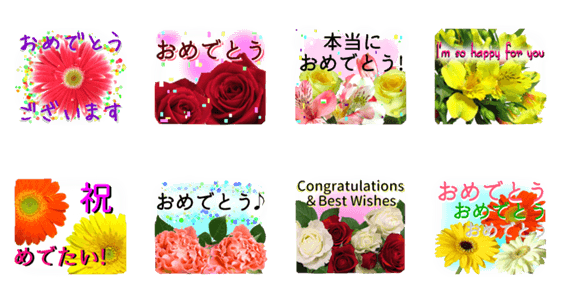本物の花を添えて送るお祝い用のスタンプです。おめでとう・Congratulations・祝 めでたい! etc.写真使用・フラワー・flower