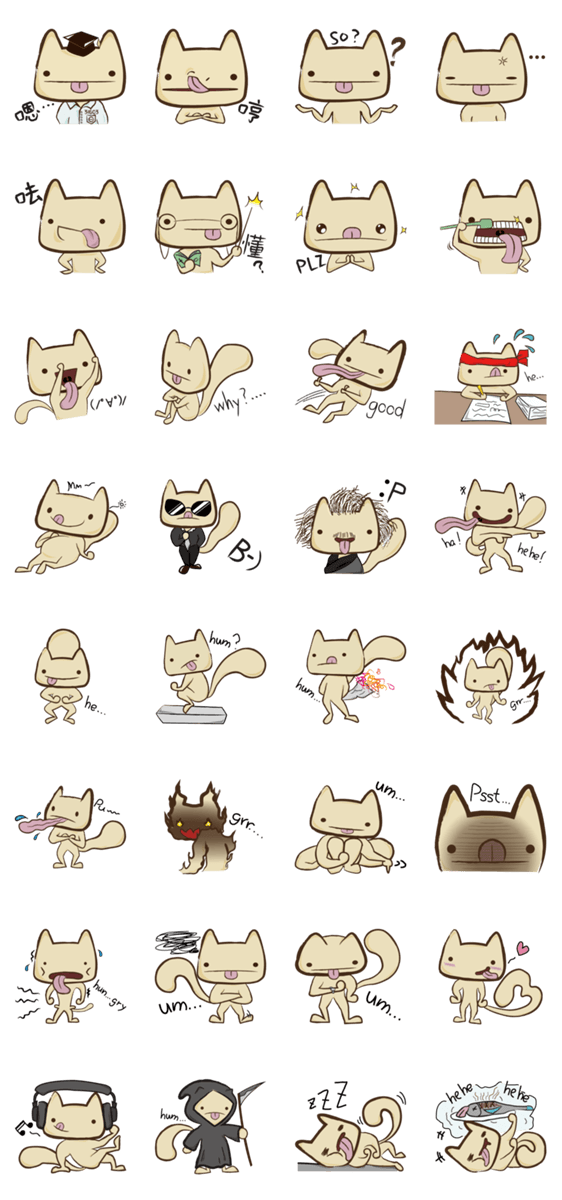 | スタンプ説明 | Look! This cat forgot to take the tongue back! So funny! |