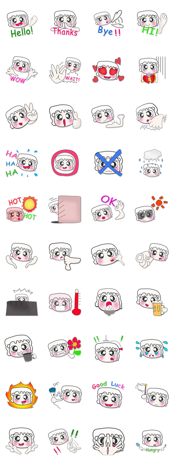白ネコのあいうえお・・・ってるスタンプ