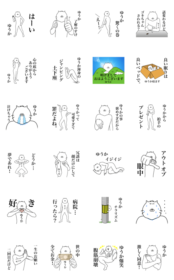 ゆうかちゃんが使える面白い動くStamp!敬語も便利!漢字は色々…優香.優花.由佳.友香.有香.由香.結花.裕香.友佳.結香.由華.有加.有花.優佳.祐佳.夕夏.佑香などユウカさんへ!