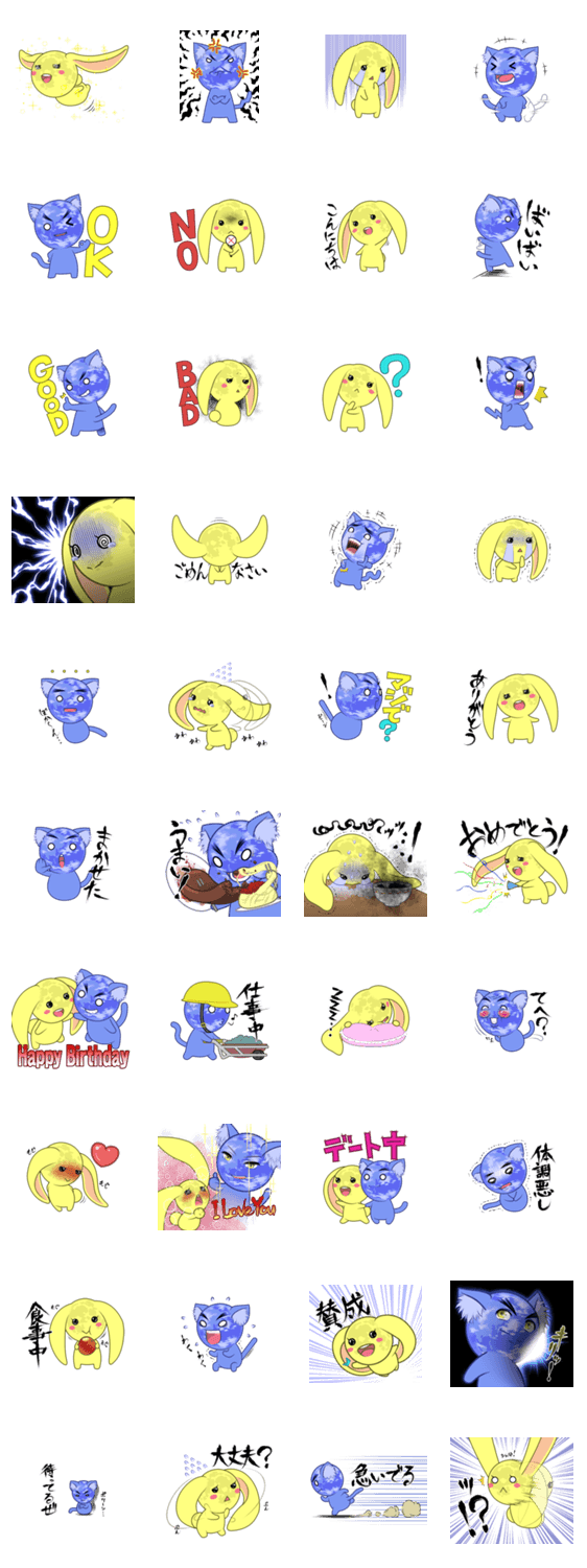 地球猫のたまお君と、月兎のつきこちゃんのスタンプです。