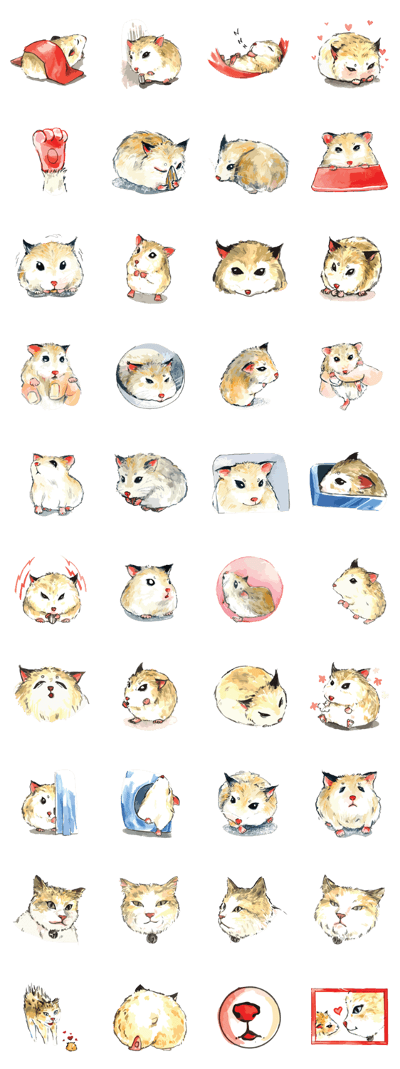 | スタンプ説明 | Water colour painting of the "Butter", he is Roborovski type, a little hamster in a big world. he is so cute and friendly with another animals. |
