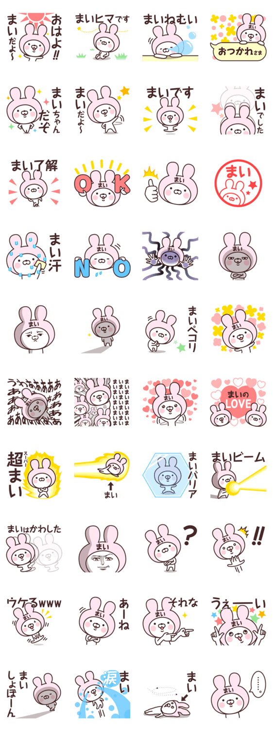 【まい】の名前うさぎ -LINEスタンプマニア