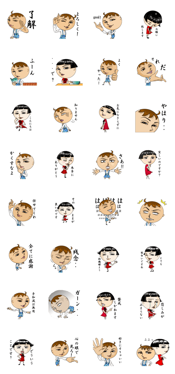 美男美女の5歳児のちょっと教訓めいたセリフのスタンプです。