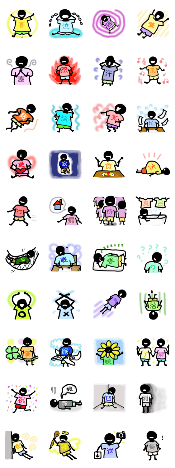 | スタンプ説明 | 観光客も大好きな漢字Tシャツを着たかわいい「Tシャツマン」が感情表現をしてあなたのトークを盛り上げます♪日常使いや家族、友達、先輩、後輩にも使えます! |