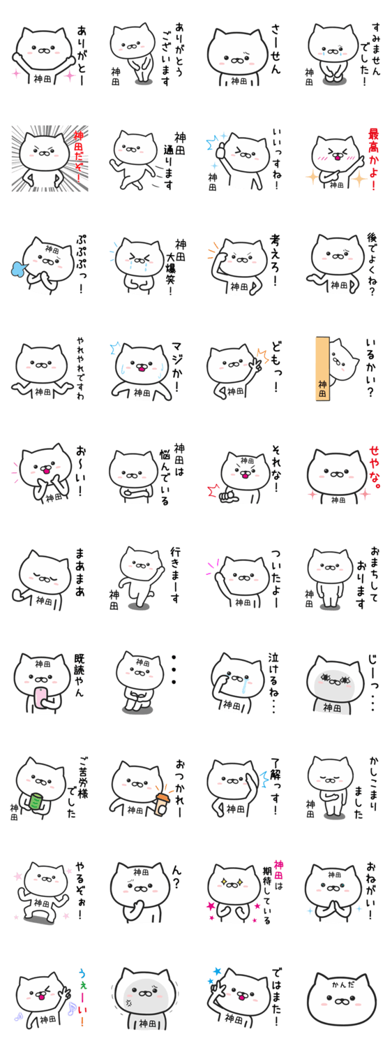名字(苗字)が神田(かんだ)の人が使える、うさぎの名前スタンプです。日常会話やネタとして使える基本セットです。カンダさんへのプレゼントにも。