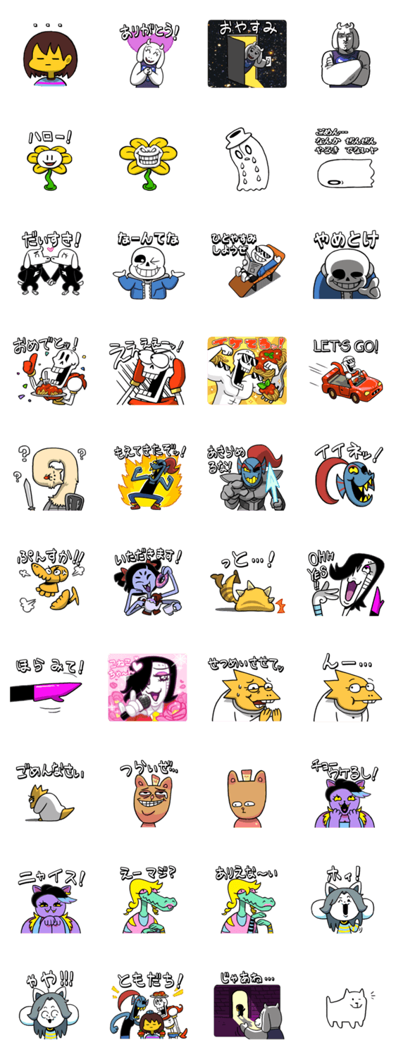 | スタンプ説明 | *キュートなUNDERTALEスタンプが あらわれた!なかまとの かいわに ケツイがみなぎった!(Design by Unoo) |