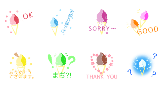 | スタンプ説明 | ジェラート大好き。 ジェラートで毎日をカラフルに。 |