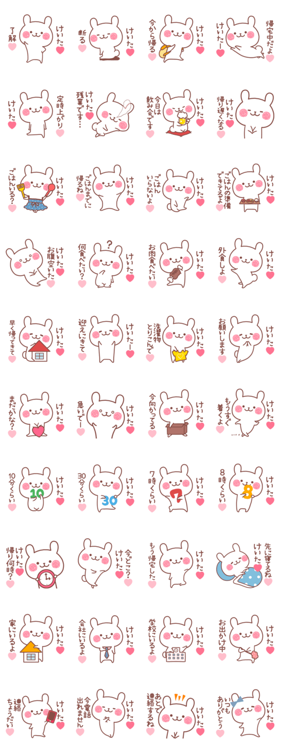 けいちゃん、けーちゃん、けいくん、けーくん、けーたなど、あなたの大切なけいたくんへ送ってください。カップルや夫婦、家族向け家族連絡用名前スタンプ。