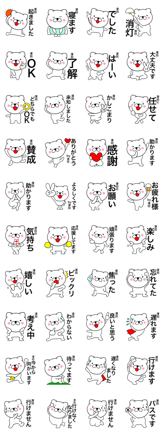 良く使う言葉を集めた、毎日使えるシンプルで可愛い澤田専用の猫のスタンプです。