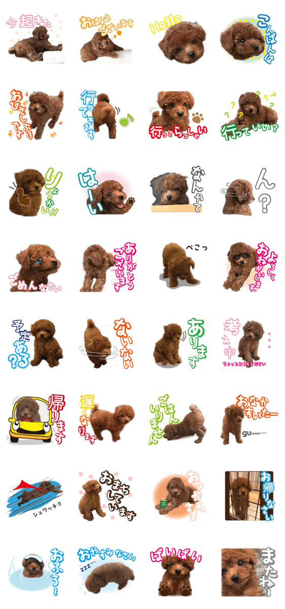 犬・動物好きの方へ。可愛い赤ちゃん顔の癒し系トイプードルです。毎日使える日常編。敬語もあり、文字が大きく見やすい写真スタンプ。