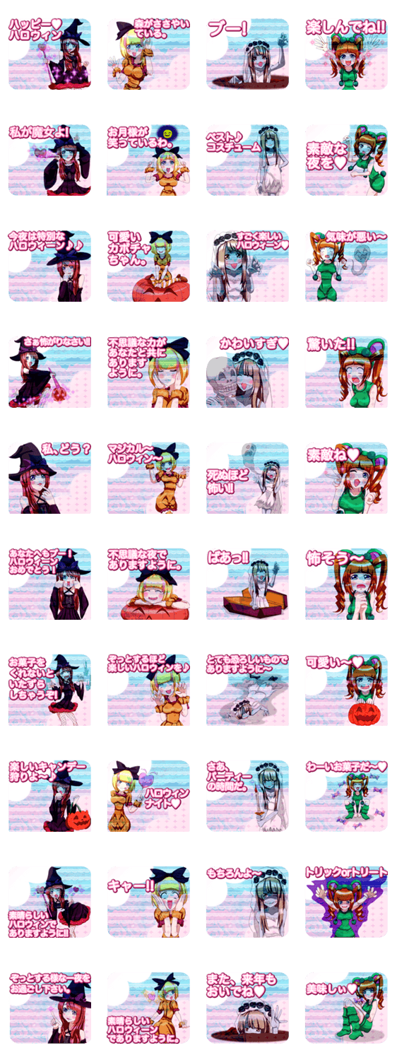 ラブリーな魔女、カボチャガール、髑髏姫、カエル女子が 怪しいハロウィンを悪戯やおもてなしでお祝いします。 セクシーで可愛い愛情表現としてご利用ください。