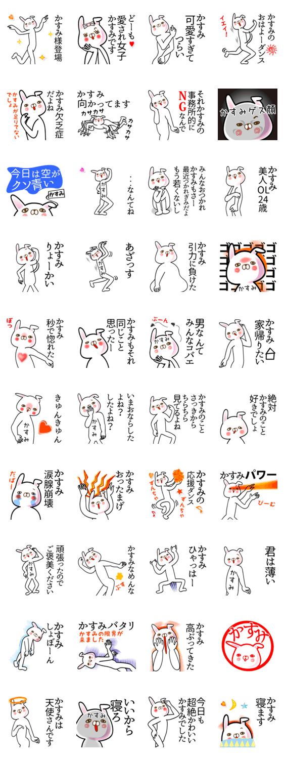 かすみさんが使う面白系名前スタンプ。かすみ、カスミ、kasumi、一美、香澄、霞さん等に。