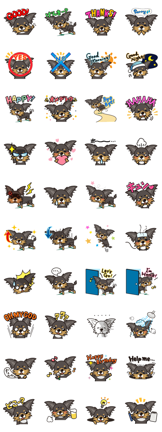 | スタンプ説明 | 「うちの子いるかな?」全130犬種のワンちゃんが、LINEスタンプに!表情豊かなスタンプでトークを楽しく盛り上げる♪iinu LINEスタンプ 【ロングコート・チワワ】 |