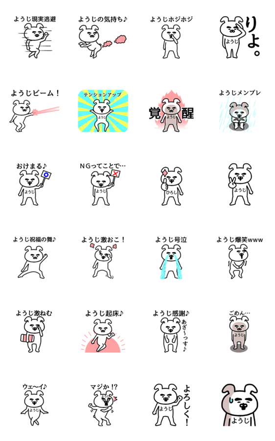ようじ,ヨウジ,洋二,洋司,耀司,要事,要次,庸史,暢二,暘二,さん等,名前が ようじさん の人が使える ようじ専用 動く名前スタンプです。