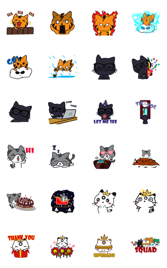| スタンプ説明 | A cat that thinks he is a tiger with a flying cloud hanging out with four adorable cats. What's this group of felines up to? Better check it out! |