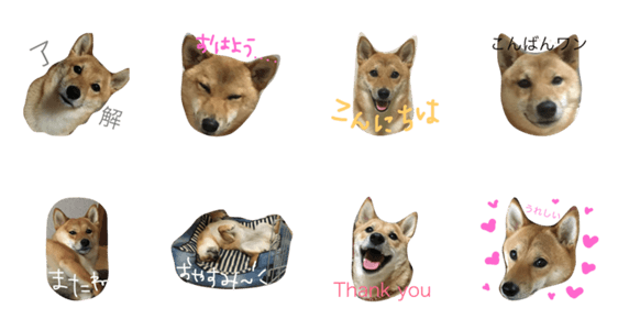 柴犬 陽菜乃の日常で撮った写真をスタンプにしてみました。〈あいさつ編〉