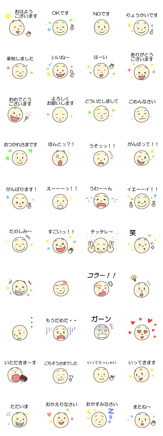 とってもシンプルなフェイスメッセージスタンプです。シンプルなので、とっても使いやすいと思います。2だけど、1とは別物です!!