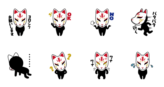 キツネの面をかぶった黒子のキャラ、黒ゴマちゃんのスタンプです。