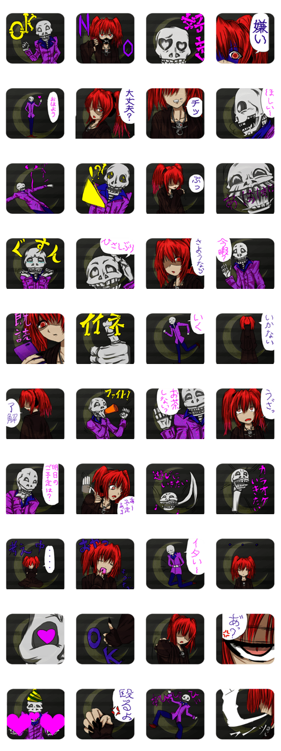 Gothic girl and skeleton crescent moon -LINEスタンプマニア