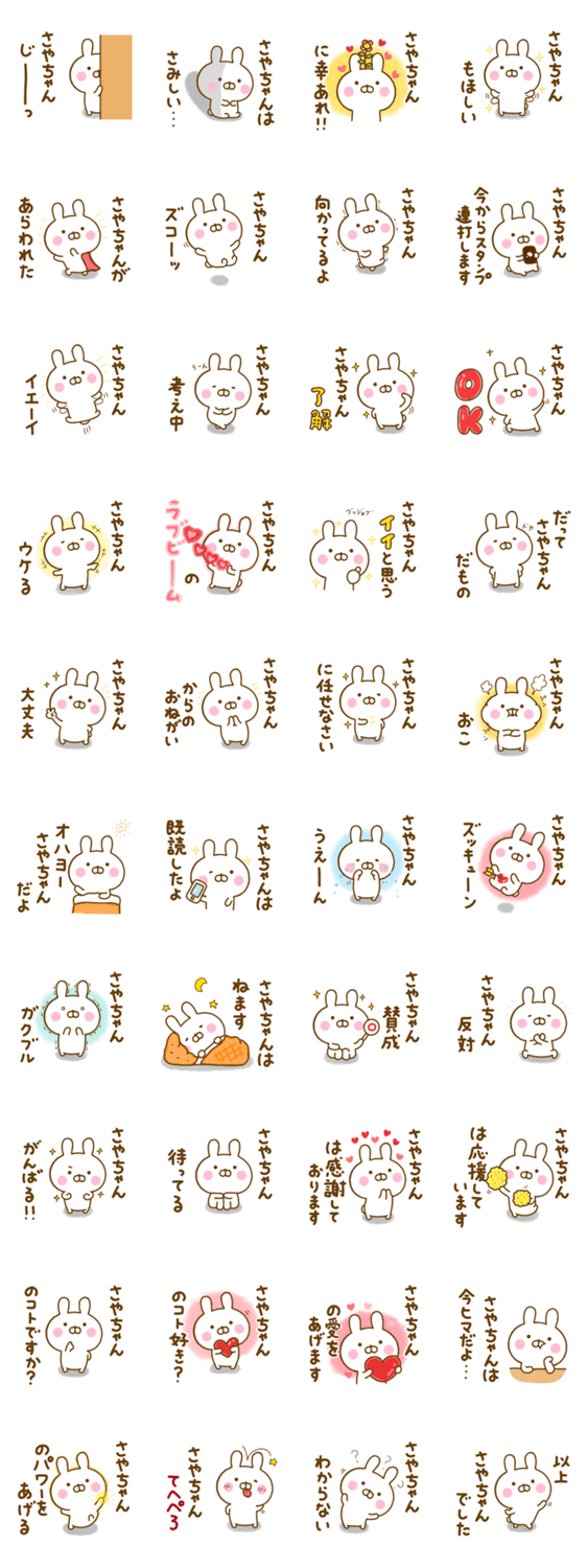 ゆる~く、かわいい、うさぎの毎日使えるさやちゃん専用の名前スタンプです♪