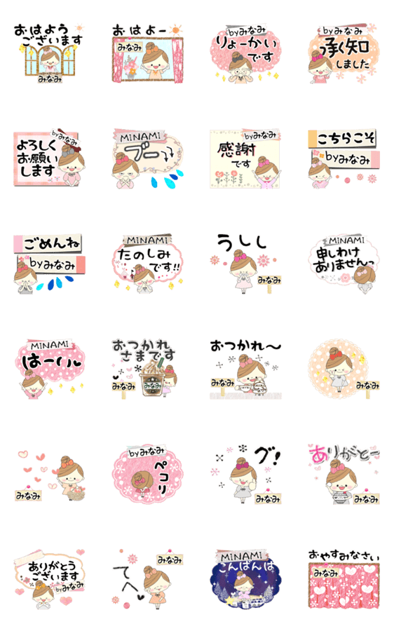 | スタンプ説明 | みなみ(ミナミ、南、三波、美波、美南海…)さん専用の動くお名前スタンプです。全国のみなみさんへ使っていただけたら嬉しいです!みなみさんへのプレゼントにもどうぞ。 |