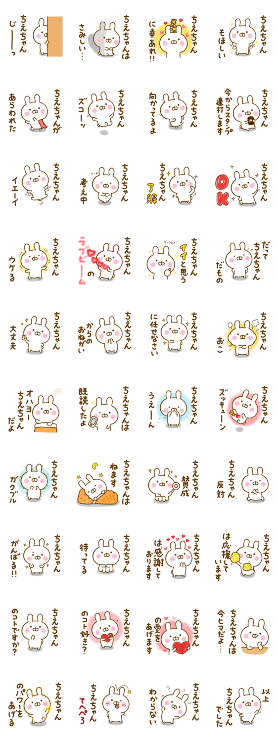ゆる~く、かわいい、うさぎの毎日使えるちえちゃん専用の名前スタンプです♪