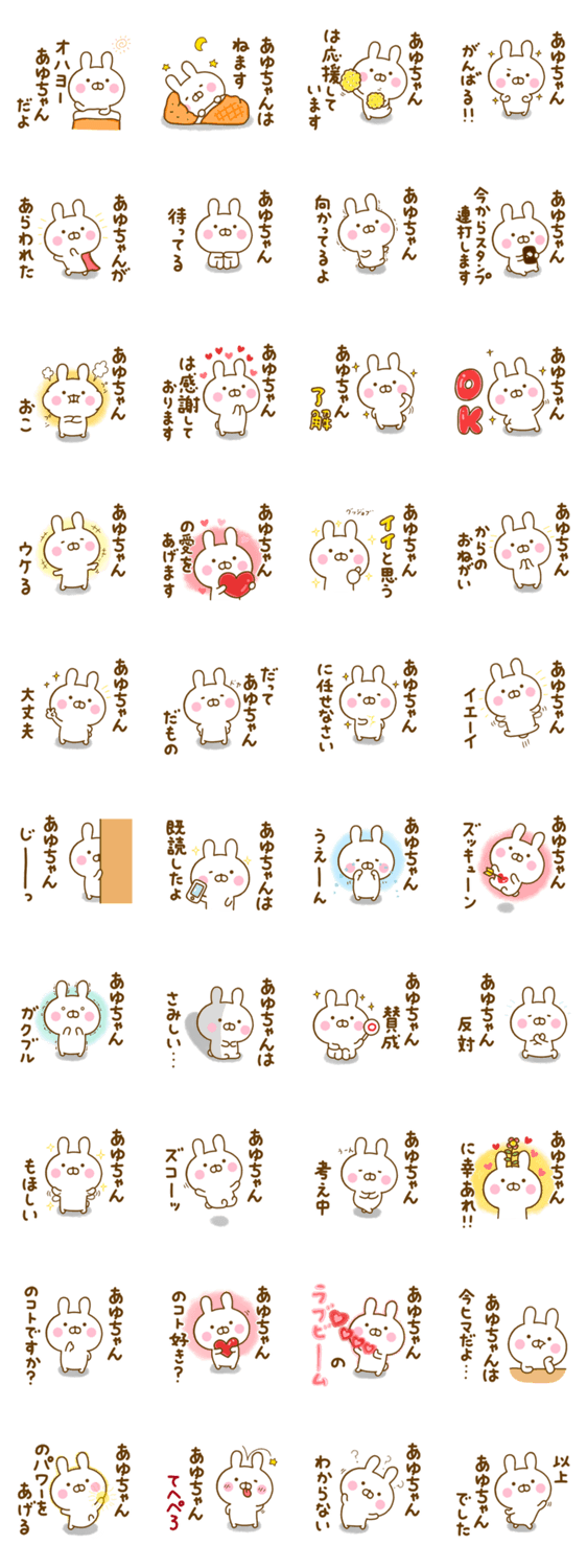 ゆる~く、かわいい、うさぎの毎日使えるあゆちゃん専用の名前スタンプです♪