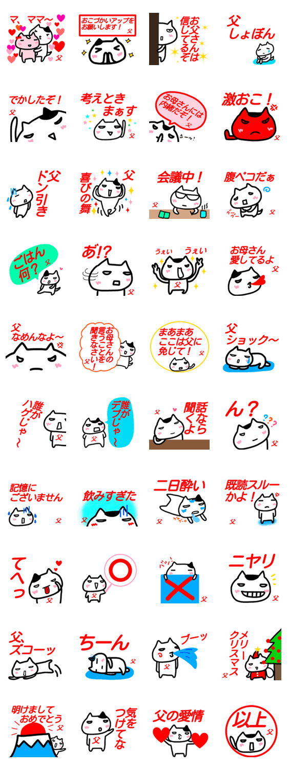 父、お父さん、パパが使う名前スタンプの第2弾です。挨拶基本セットです。
