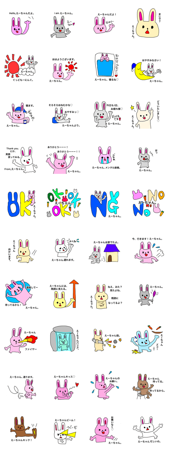 えーちゃん専用スタンプ バージョン2。全国のえーちゃん、ぜひ使ってください☆ えみ/えり/えいすけ/えいのすけ/えりな/えま/えらいざ/えいちゃん 名前スタンプ