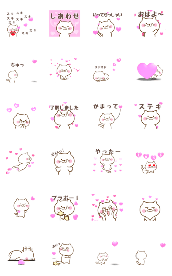 好きな人へ想いを伝えるハートとネコのアニメーションスタンプ