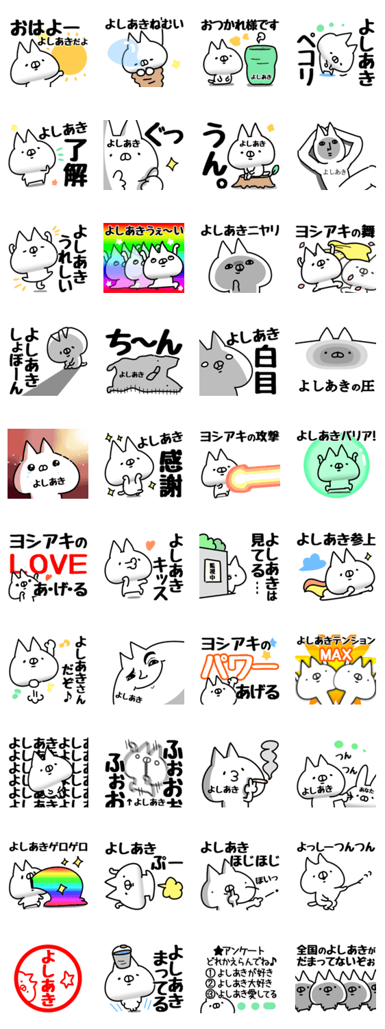 よしあき/君/くん/さん/名前/あだ名/名字スタンプ/ヨシアキ/義明/義昭/良明/祥明/嘉明/芳明/義光/慶明/世彰/良昭/喜明/佳明/美明/善昭/嘉章/良彰/吉昭/義秋/専用/面白い.