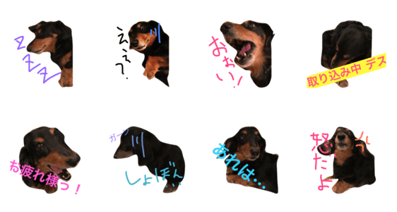 愛犬のミニチュアダックスフンドです。やんちゃで表情豊かな雄犬です。ダックスならではの可愛さ面白さをスタンプにしました。