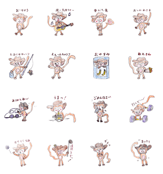 ドリフト、ギター、釣り、ゴルフ、友達をこよなく愛するモンキー王子のスタンプです♡