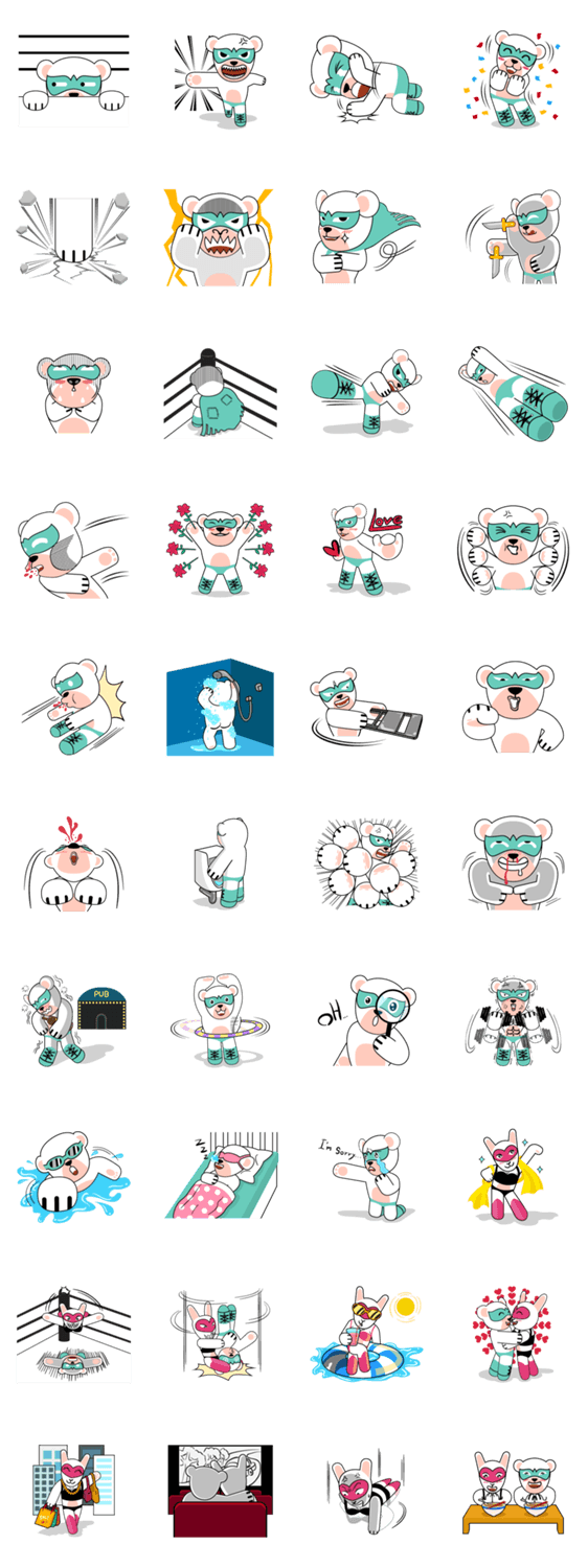 | スタンプ説明 | white bear and white rabbit are crazy cute wrestling couples |