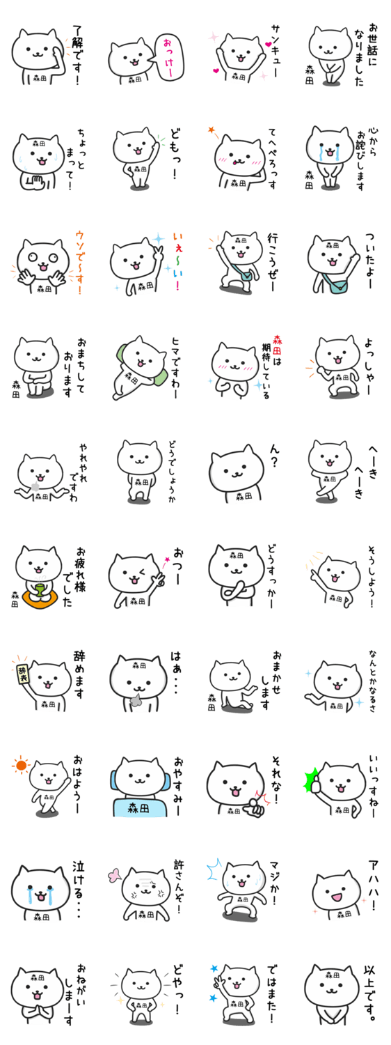 森田(もりた)さんが使える猫 -LINEスタンプマニア