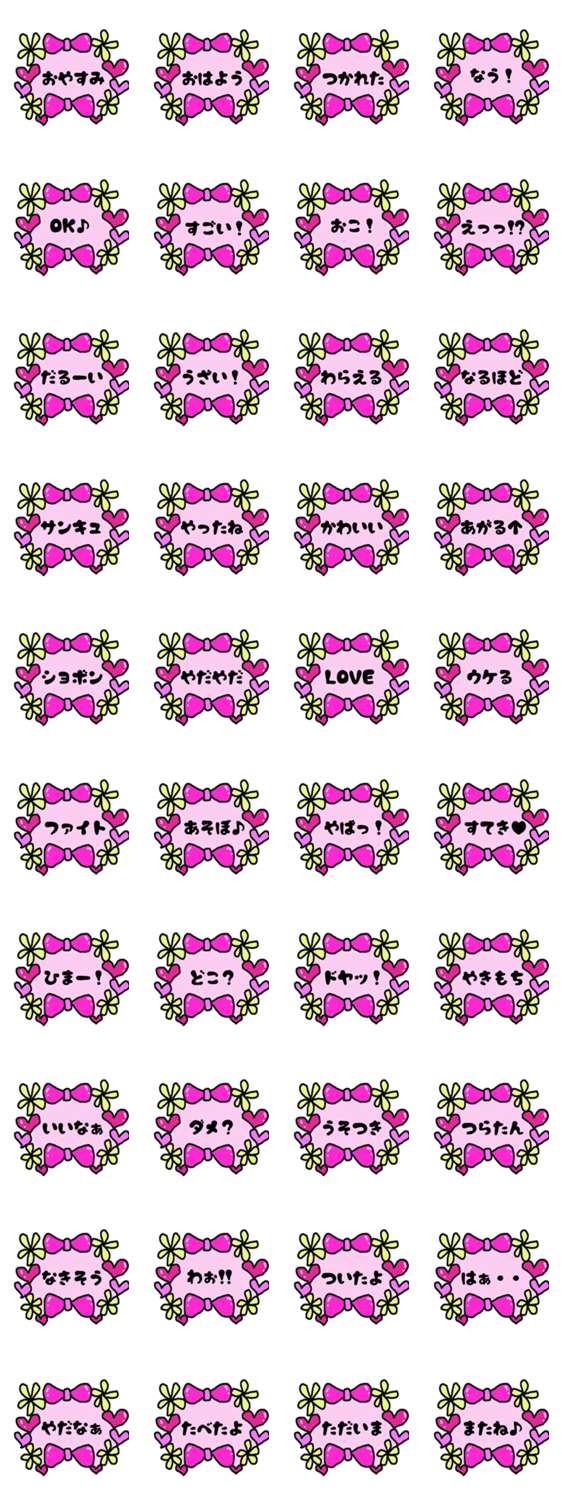 | スタンプ説明 | 女の子が大好きなハート&フラワーで 日常会話を可愛く盛り上げてくれます。 |