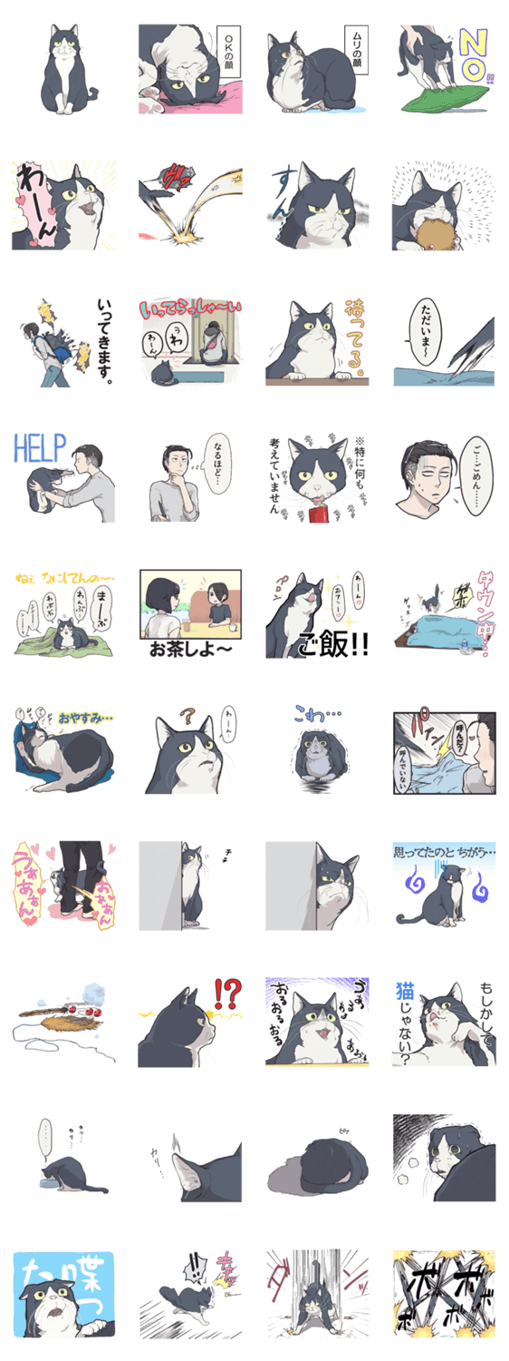 白ネコのあいうえお・・・ってるスタンプ