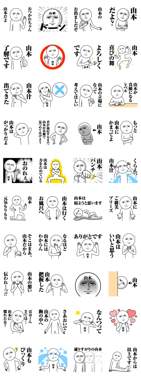 山本の真顔の名前スタンプ -LINEスタンプマニア