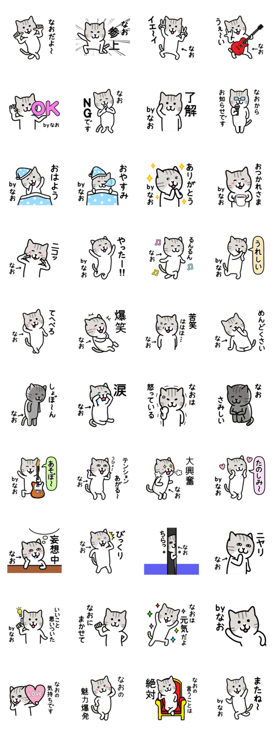 なおこ、なおみ、なおき、なおと、なおや等、なおがつく人が日常会話で使える名前スタンプです。