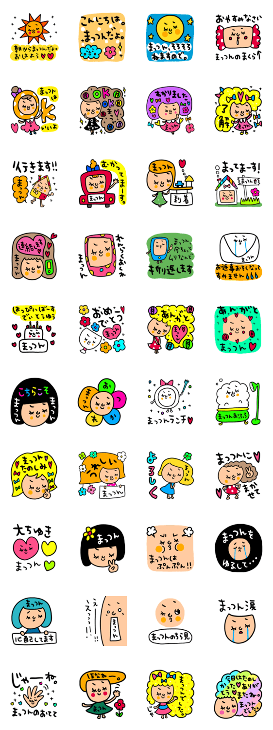 まっつん専用名前のスタンプ。よく使う言葉でセットにしましたー!かわいいものからシュールなものまで。