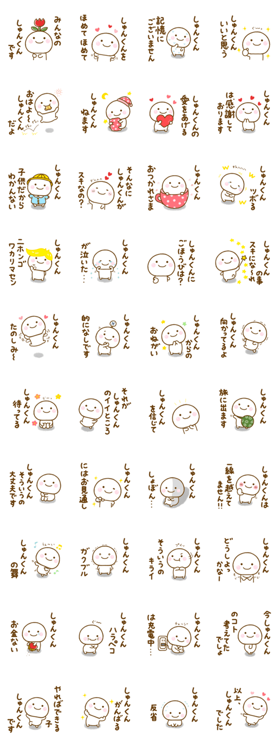 俊、駿、俊介、しゅんすけ、しゅんじ、しゅんた、しゅんきなど全国のしゅんくんが使える面白可愛い名前スタンプです(*‘ω‘ *)