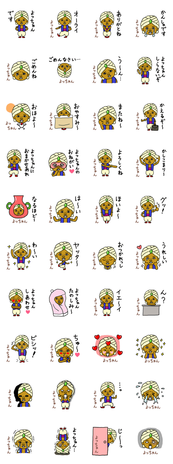 「よっちゃん」のためのスタンプです。よしお、よしこ、よしみ、よしだ、よしの、よしい、よしかわ、よういち、よしゆき、よしひこ、よしあき…全てのよっちゃんへ。